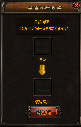 相关材料:装备碎片,使用装备可以分解装备碎片!